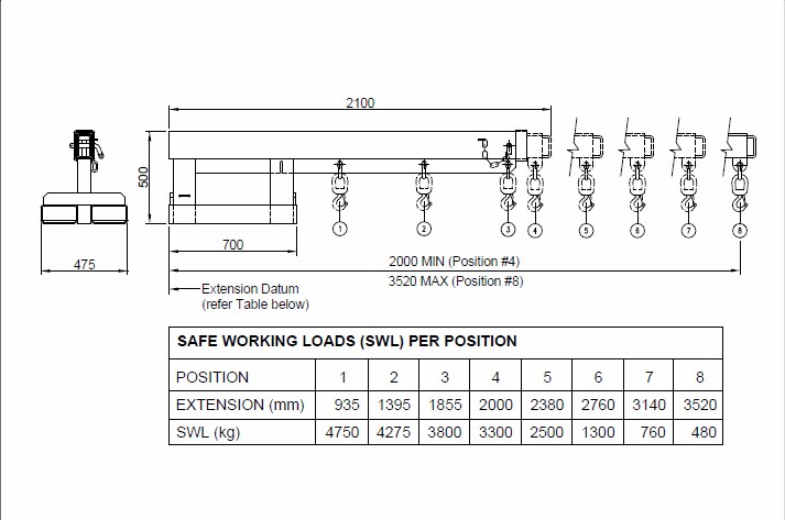 •โหลดการทำงานที่ปลอดภัย (SWL) 4750kg สูงสุด